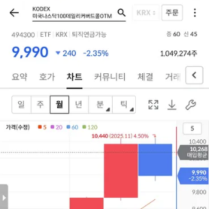 B 상품(커버드콜): KODEX 미국 나스닥 100데일리커버드콜 👉-2.35 하락